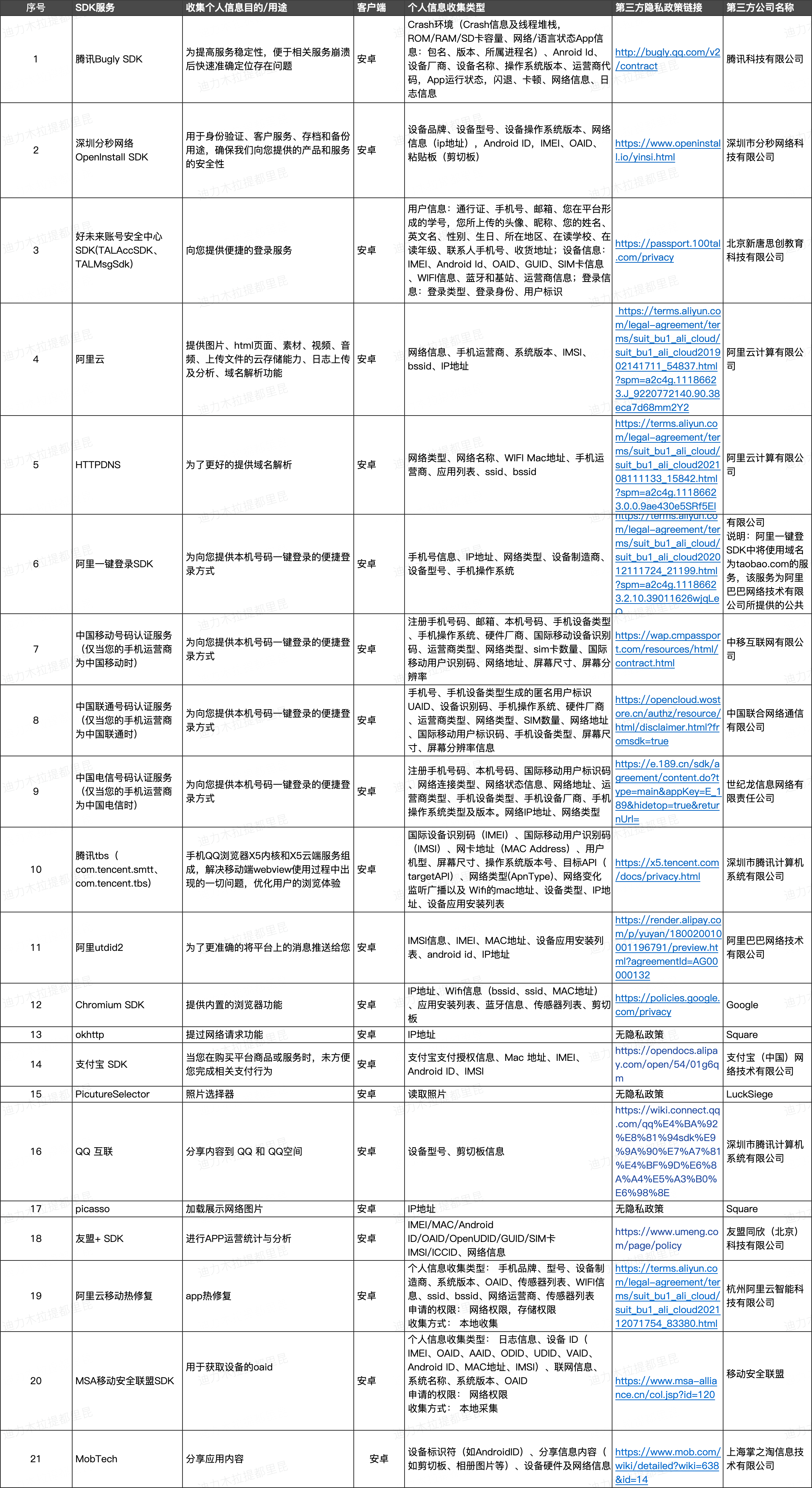 Android操作系统第三方SDK列表